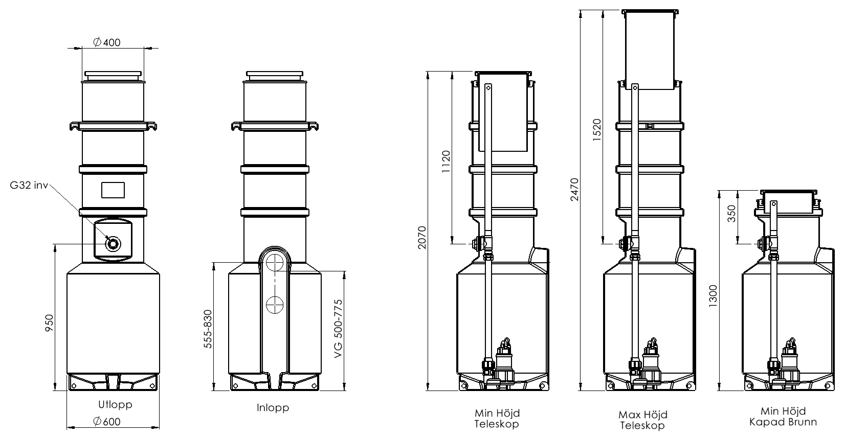 - Generöst tilltagen pumpsump Ø 600 mm